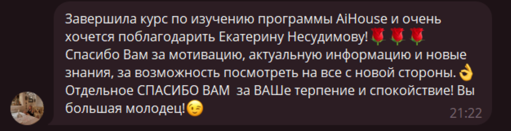 Тренинг по использованию AiHouse проходит в течение 4-х дней работы с преподавателем и ещё 3-х дней на самостоятельное практическое задание.